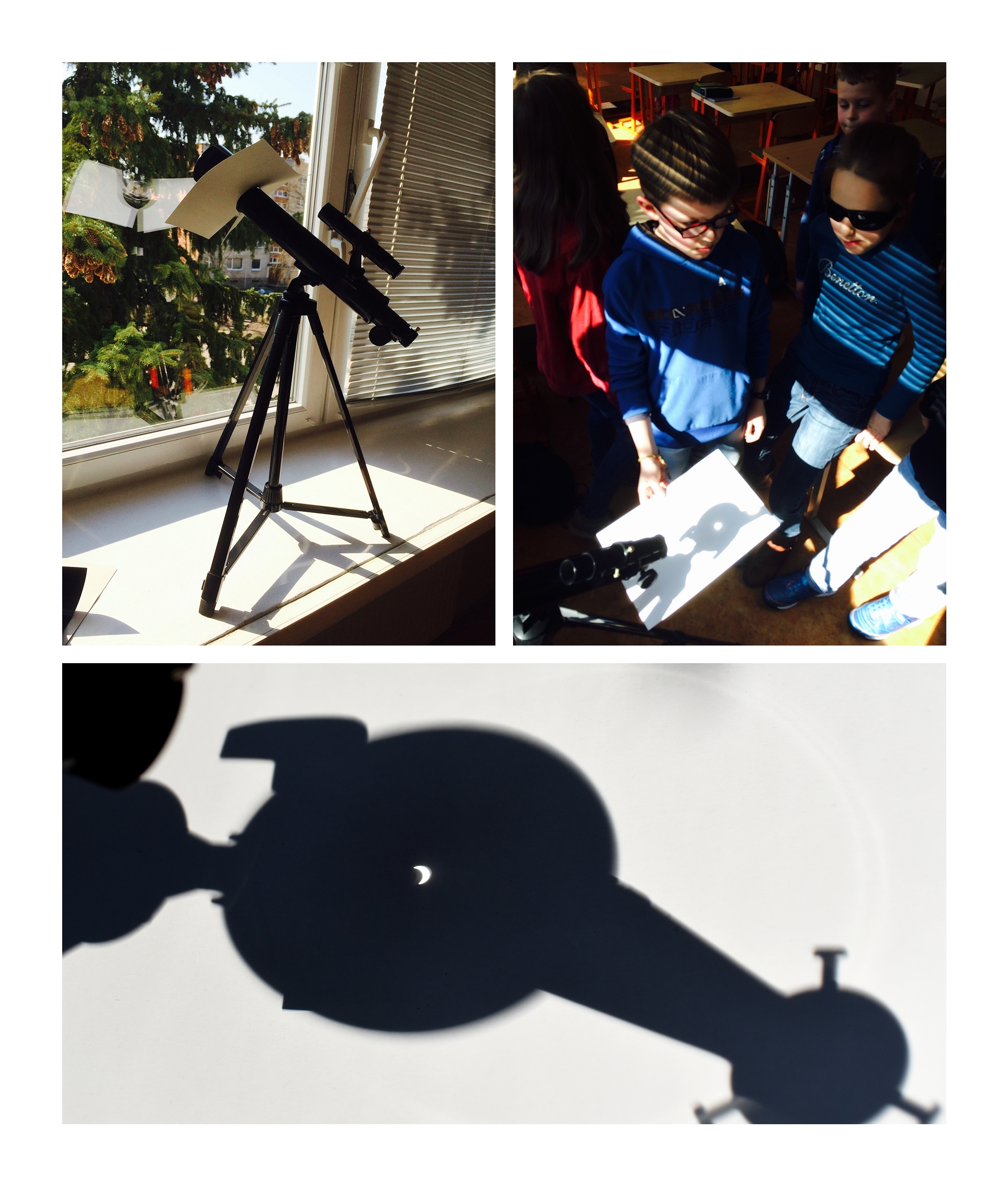 3c klasės mokiniai kartu su klasės vadove Regina Gaponova saulės užtemimą bandė pamatyti kitaip. Mokinio Igno mama atnešė teleskopą, kartu su vaikais suprojektavo vaizdą ant popieriaus lapo ir taip tarsi „nufotografavo“, kaip mėnulis bando uždengti saulę.