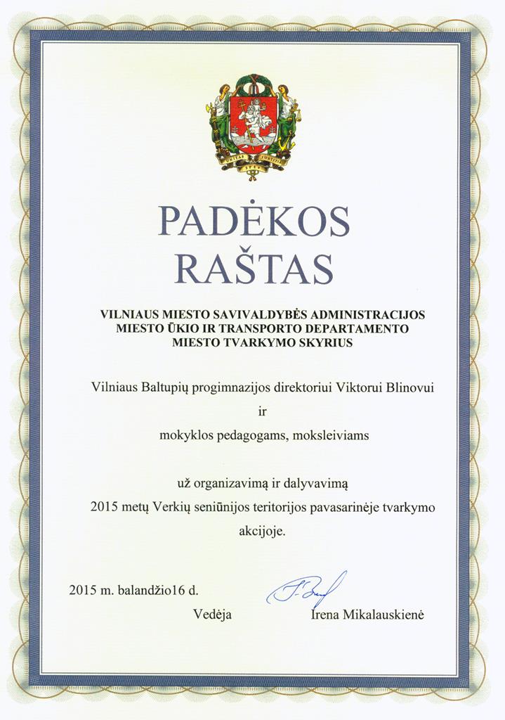 14 balandžio, 2015 Category: Naujienos Komentavimas išjungtas įraše Baltupių progimnazijos mokiniai dalyvavo pavasarinėje Verkių seniūnijos aplinkos tvarkymo akcijoje