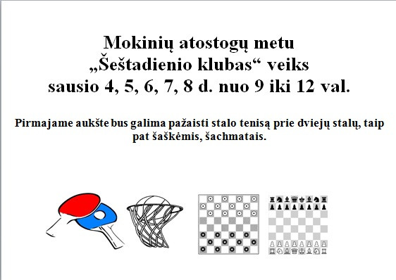 „Šeštadienio klubas” informuoja 23 gruodžio, 2015 Category: Naujienos Komentavimas išjungtas įraše „Šeštadienio klubas” informuoja