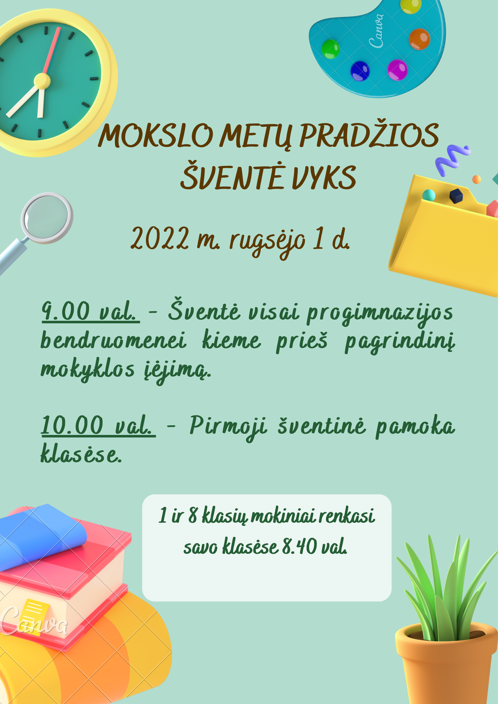 Kviečiame į mokslo metų pradžios šventę! 23 rugpjūčio, 2022 Category: Naujienos Komentavimas išjungtas įraše Kviečiame į mokslo metų pradžios šventę!