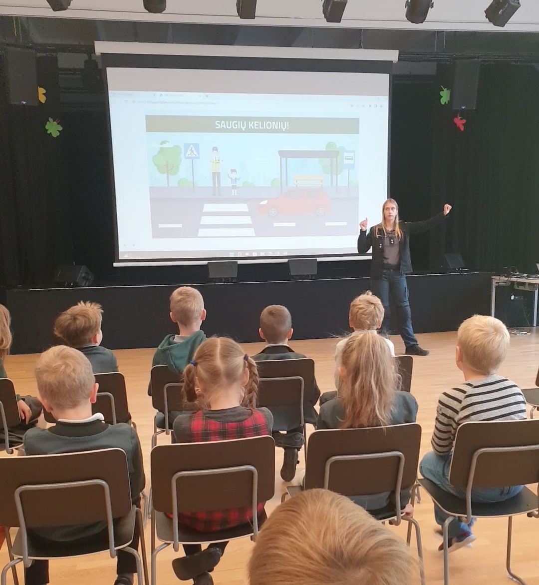 Rugsėjo 26 dieną Baltupių progimnazijos pirmokai dalyvavo saugaus eismo pamokoje, kurią vedė bendruomenės pareigūnė Justina Buginytė.